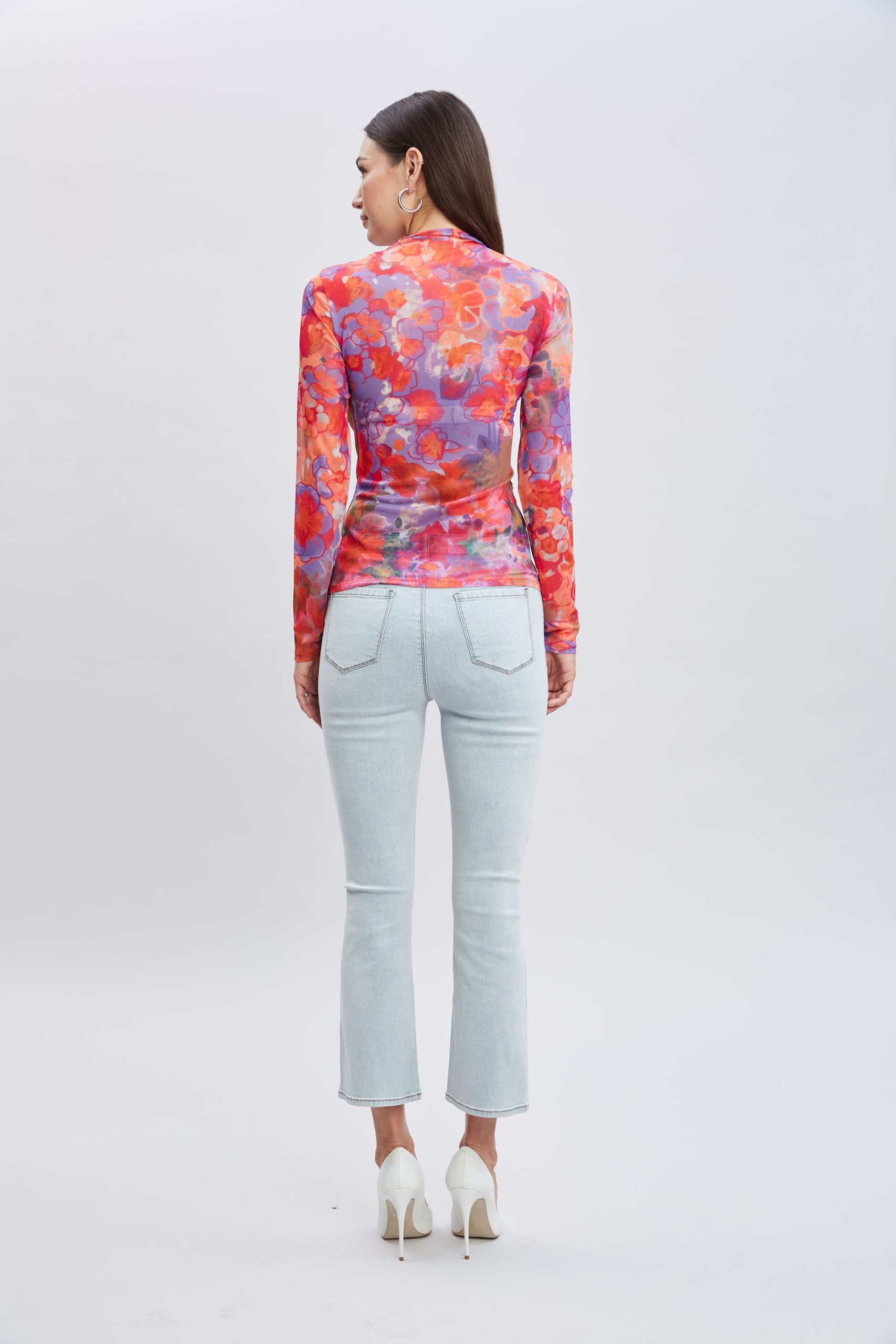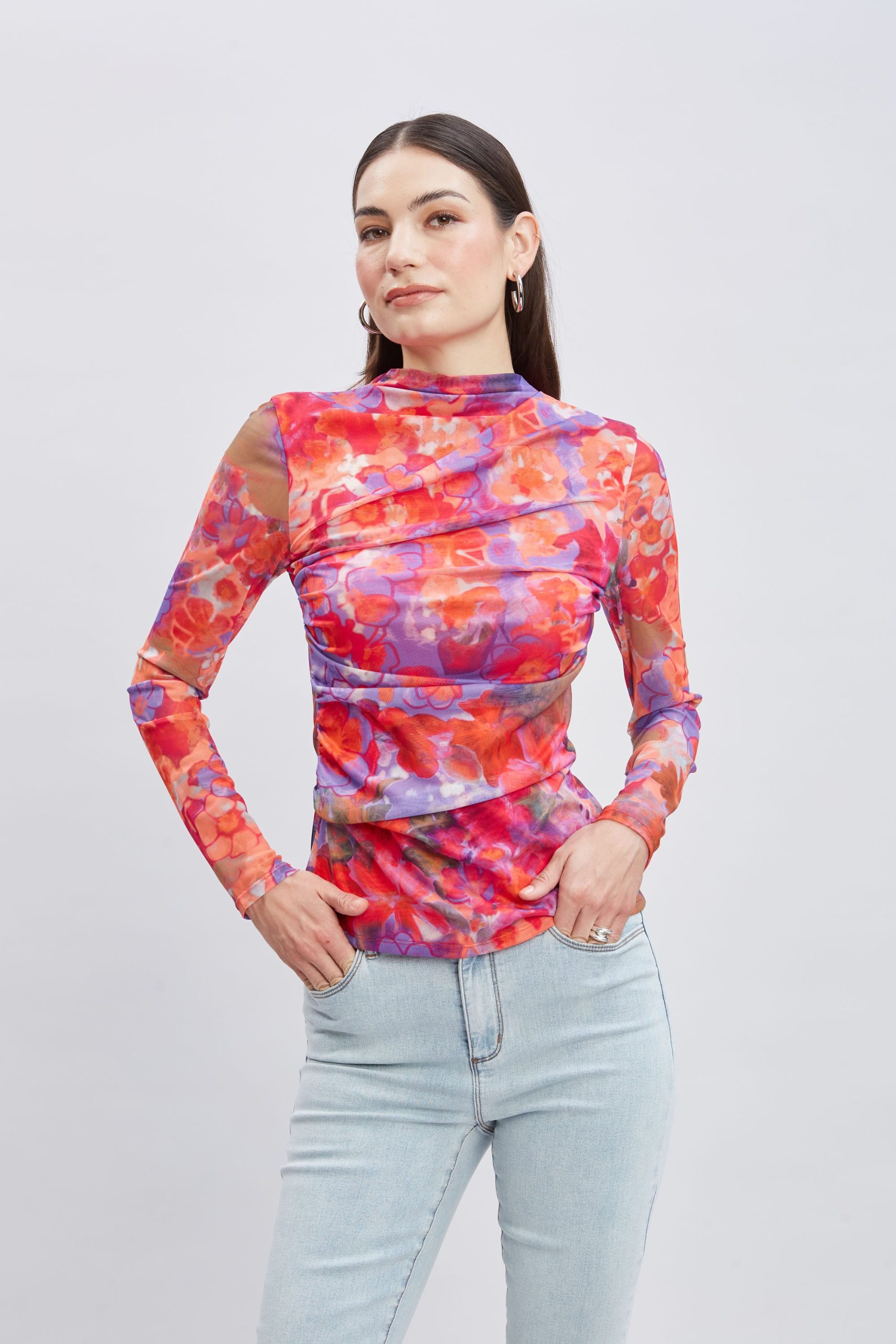 The T-Shirt is reimagined in our Bloomsbury Floral Printed on stretch Mesh Jersey. It ‘s simply chic with its crew neck and ruched detailing.