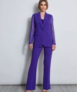 Modern and edgy, the Silk Chiffon sleeves & back create a blazer with a decided cool factor. By mixing luxe Fluid Crepe with soft Silk Chiffon, this relaxed fit single-breasted jacket is instantly transformed into something unique. Pair it with its matching pants for a chic monotone column or mix it up with denim for an easy casual vibe.