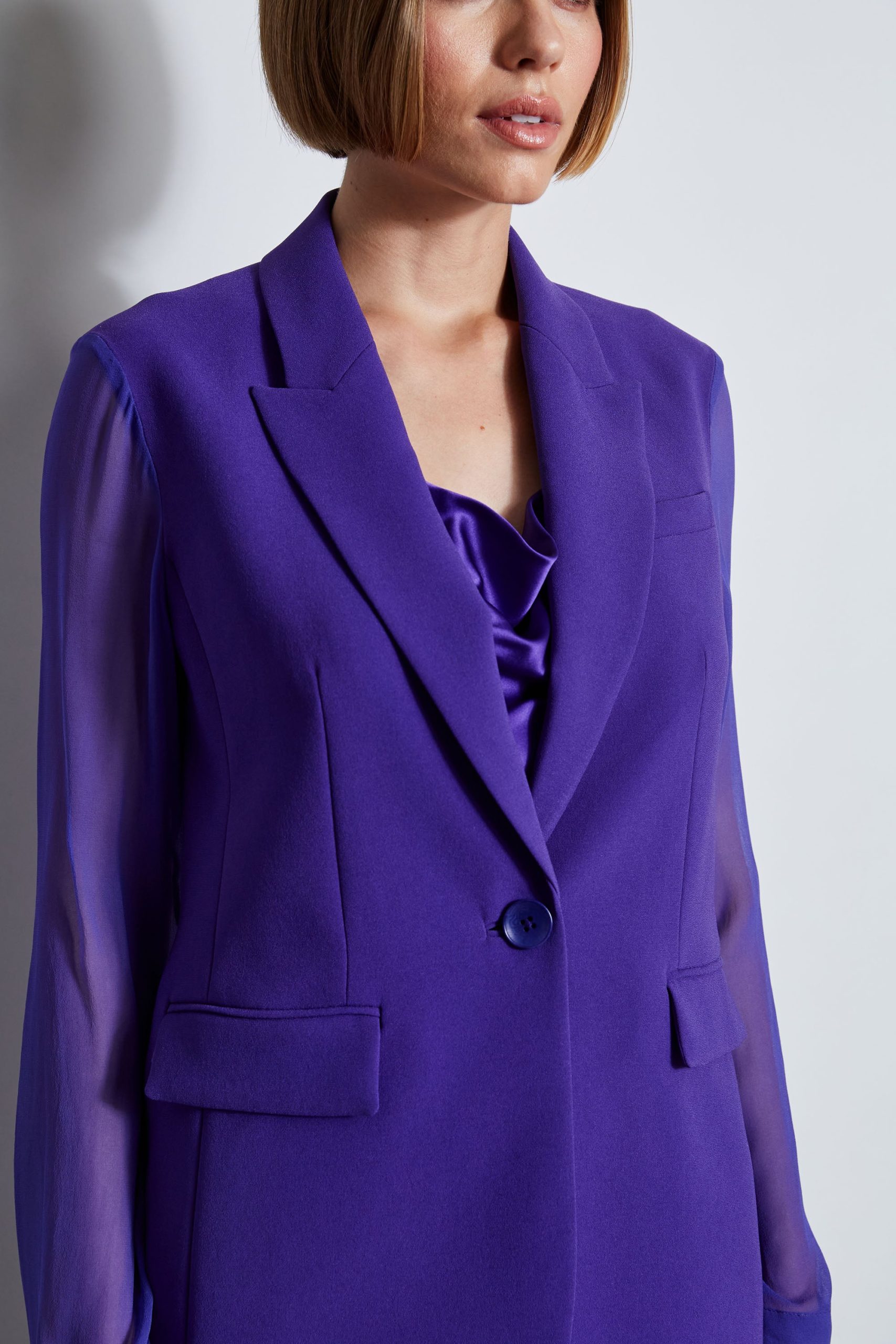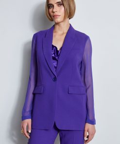 Single Breasted Blazer with Silk Chiffon Sleeves & Back
