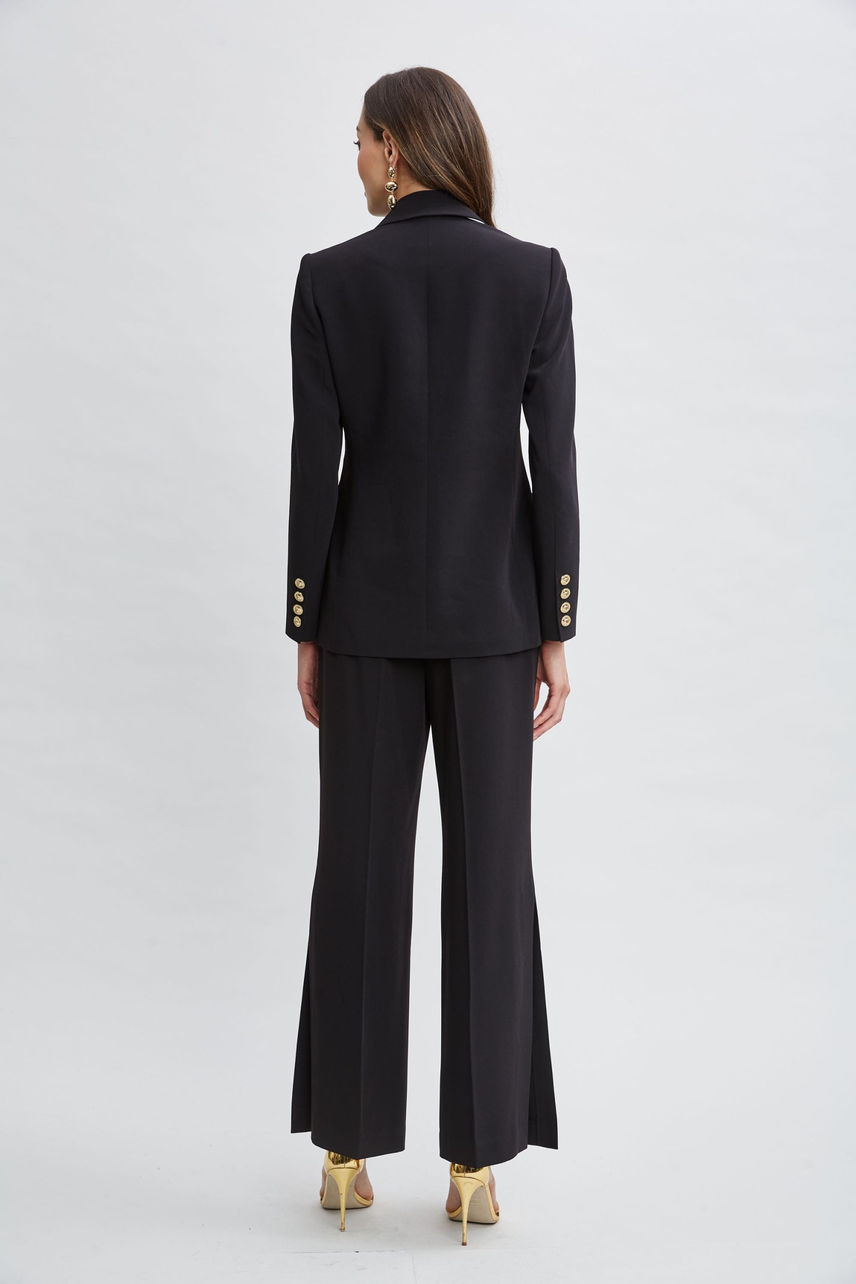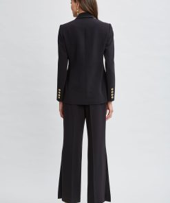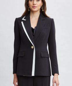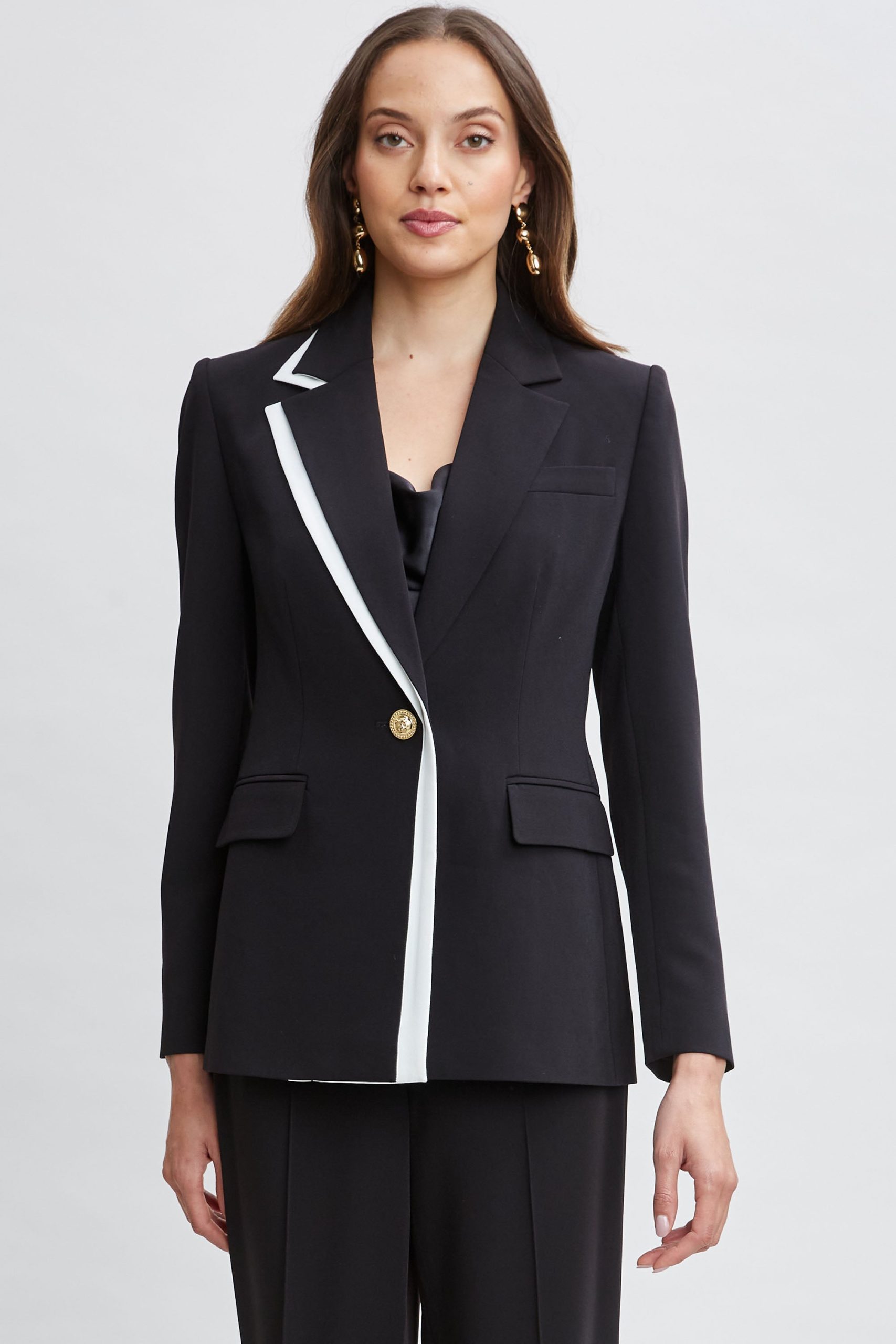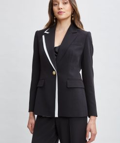 Single-Button Crepe Blazer with Contrast Trim Lapel