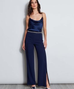 Our free-flowing Fluid Crepe pant is the pant your closet has been longing for. This Crepe pant has a side seam overlay and interior side seam slit. Perfect for dressing up or down -consider this a seasonless addition to your closet.