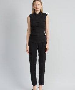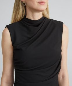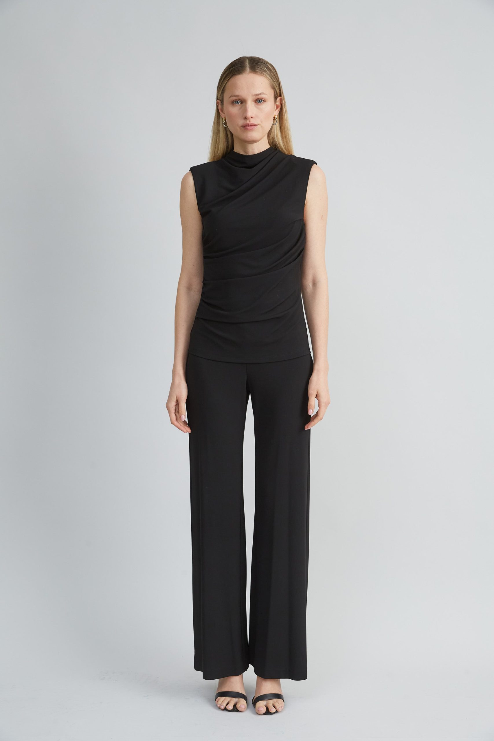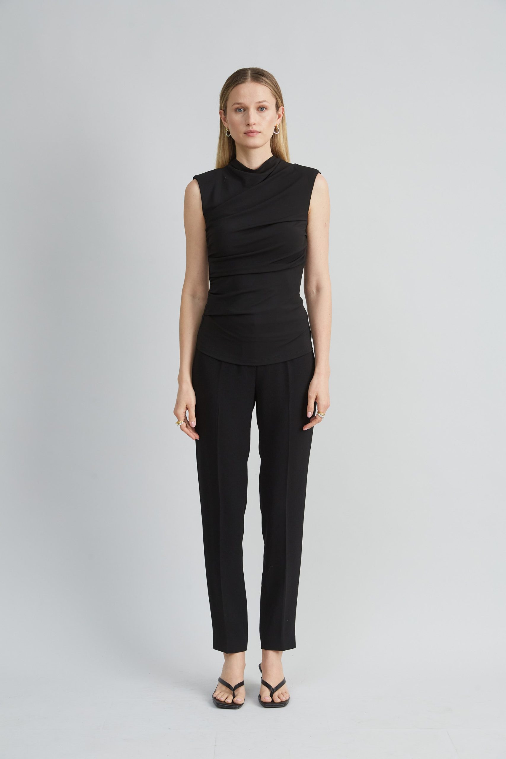 Sleeveless Matte Jersey Knit with Draped Neckline & Strong shoulder.