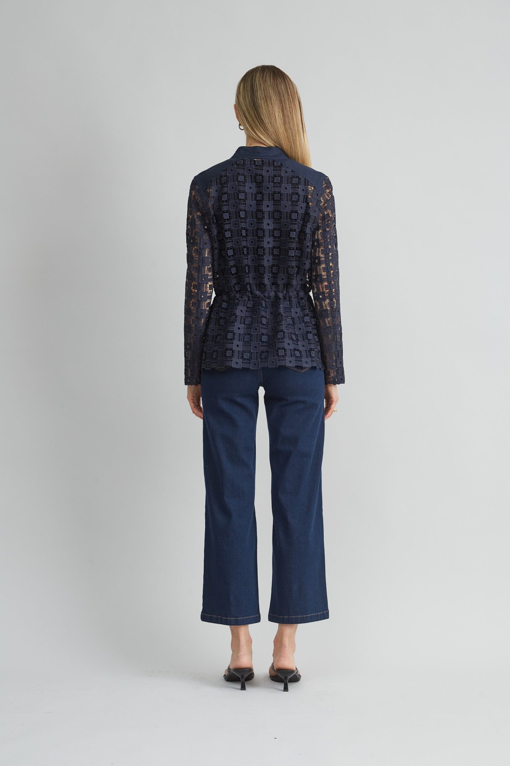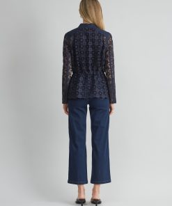 With its linen cargo pockets & scallop hem, our openwork geo lace jacket features an adjustable drawstring at the waist – the ideal light layer for summer months.