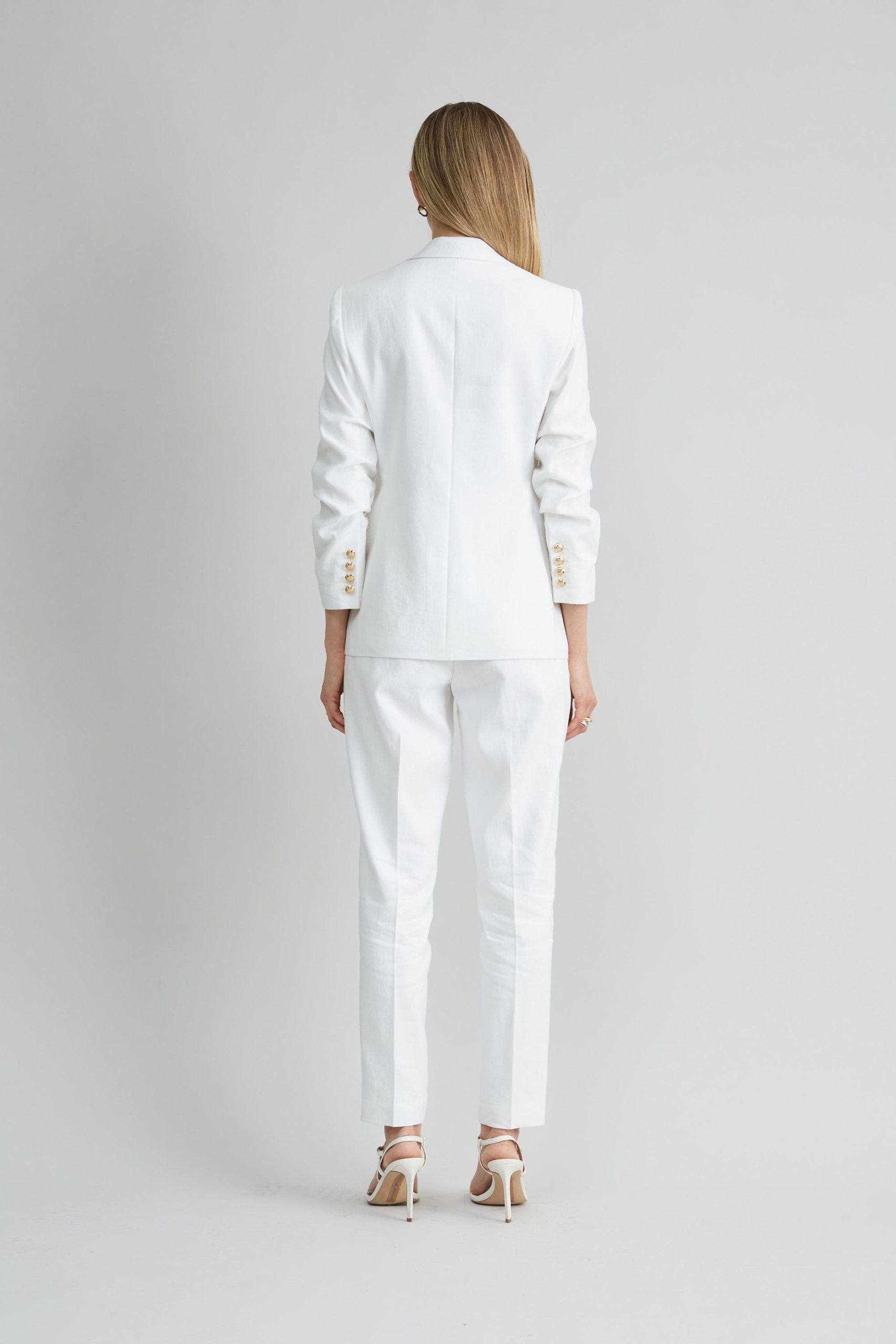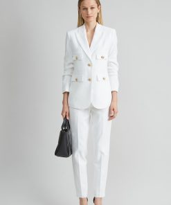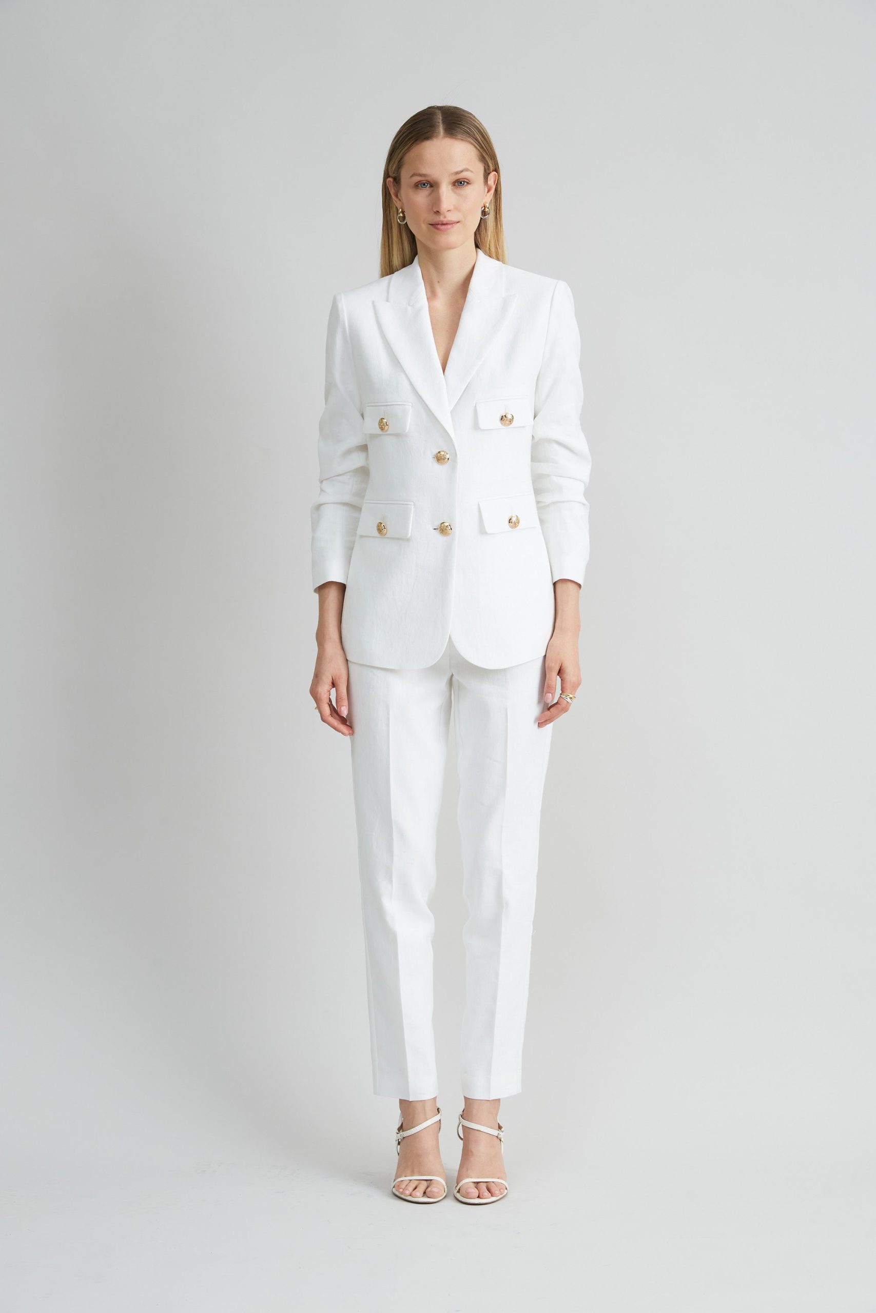 Elie Tahari Women’s Linen Crest Button Blazer | White