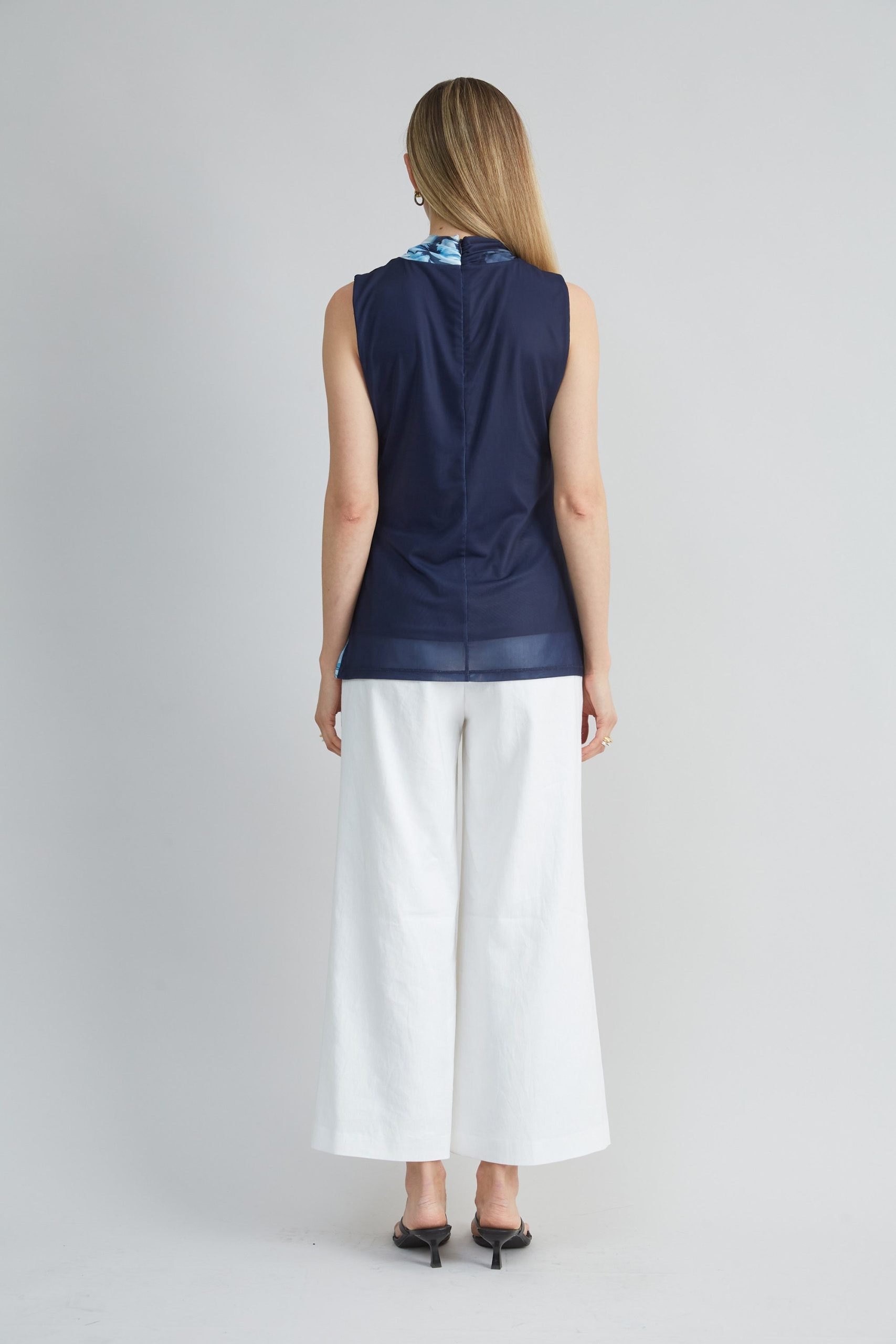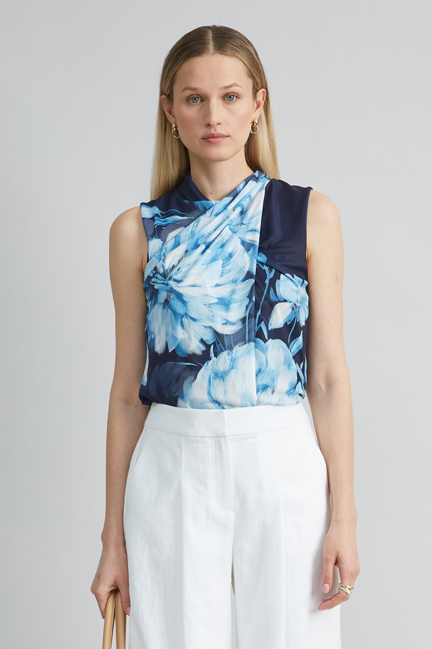 Impress without effort in this draped floral print knit that’s both structural and soft. Crafted in a refined mesh, our midnight shadow floral print speaks of Spring.