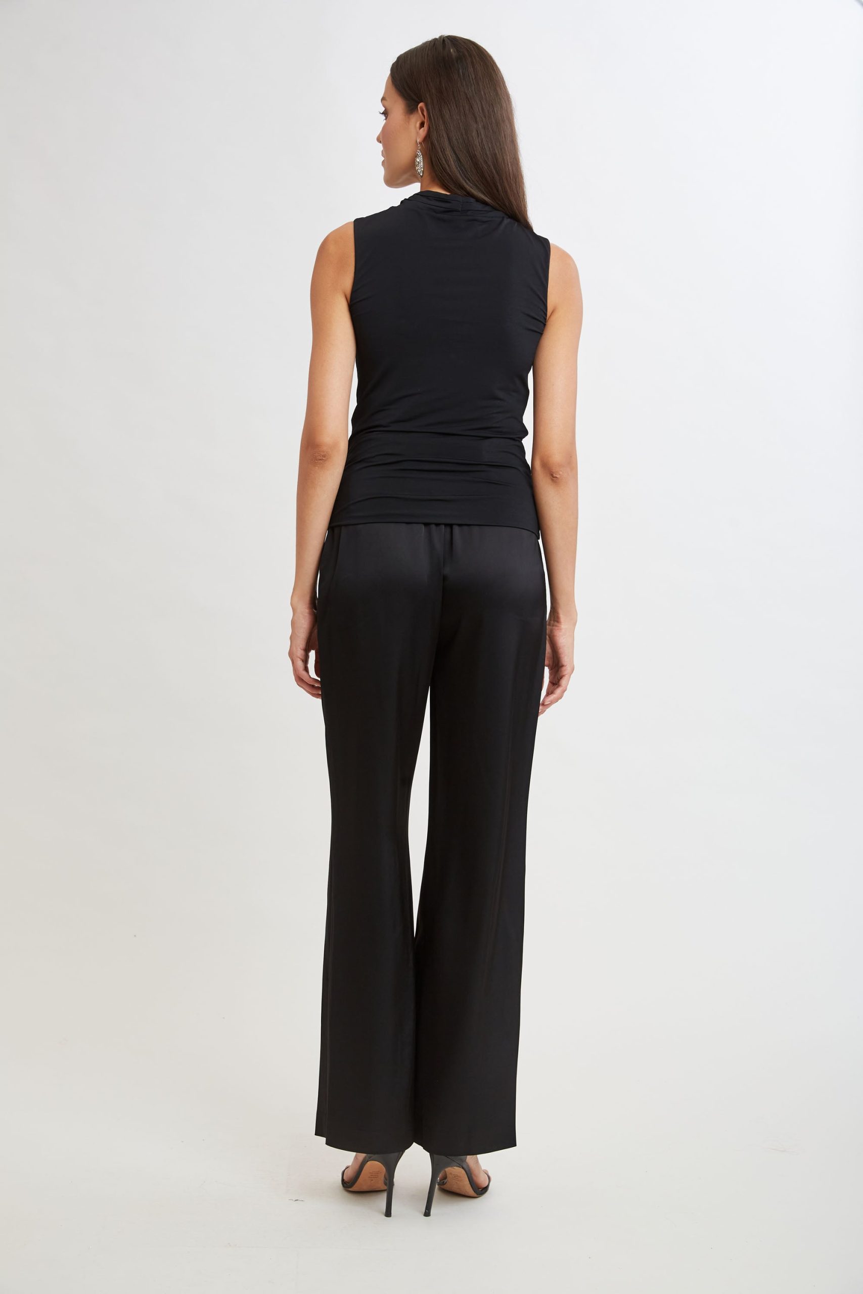 Sleeveless Matte Jersey Tucked Knit with Draped Neckline