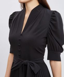 The easiest seasonless dress is elevated with puff sleeves and a knife pleated skirt. Designed in a lightweight crepe with a removable self-sash, our effortless Pleated Midi Dress practically floats with movement.