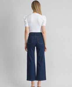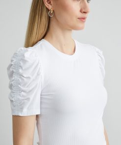 Crafted in Viscose Knit, ruched short sleeves add dimension to the classic rib t-shirt.