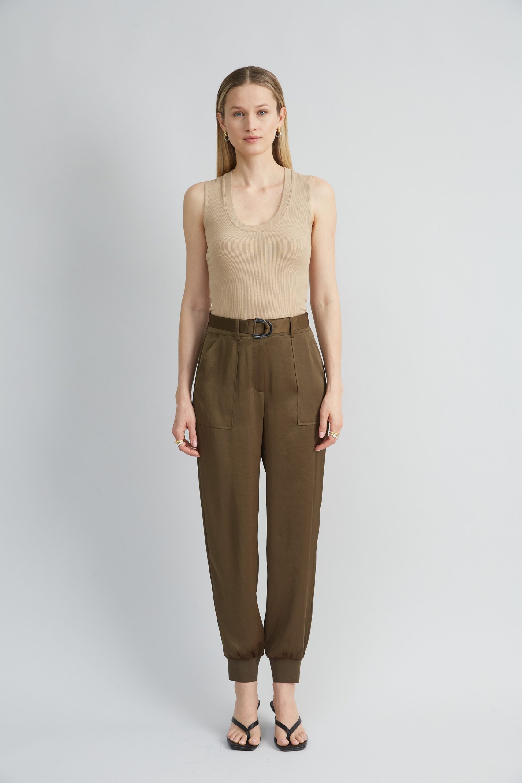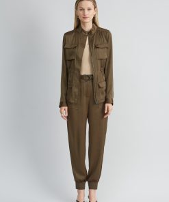Modern Washed Satin lends a casual expression to the season’s Cargo Pant. The relaxed fit, drawstring waist & rib cuff detail are the definition of effortless sophistication. Designed w a self-sash & D-ring buckle, you will live in these pants year round.
