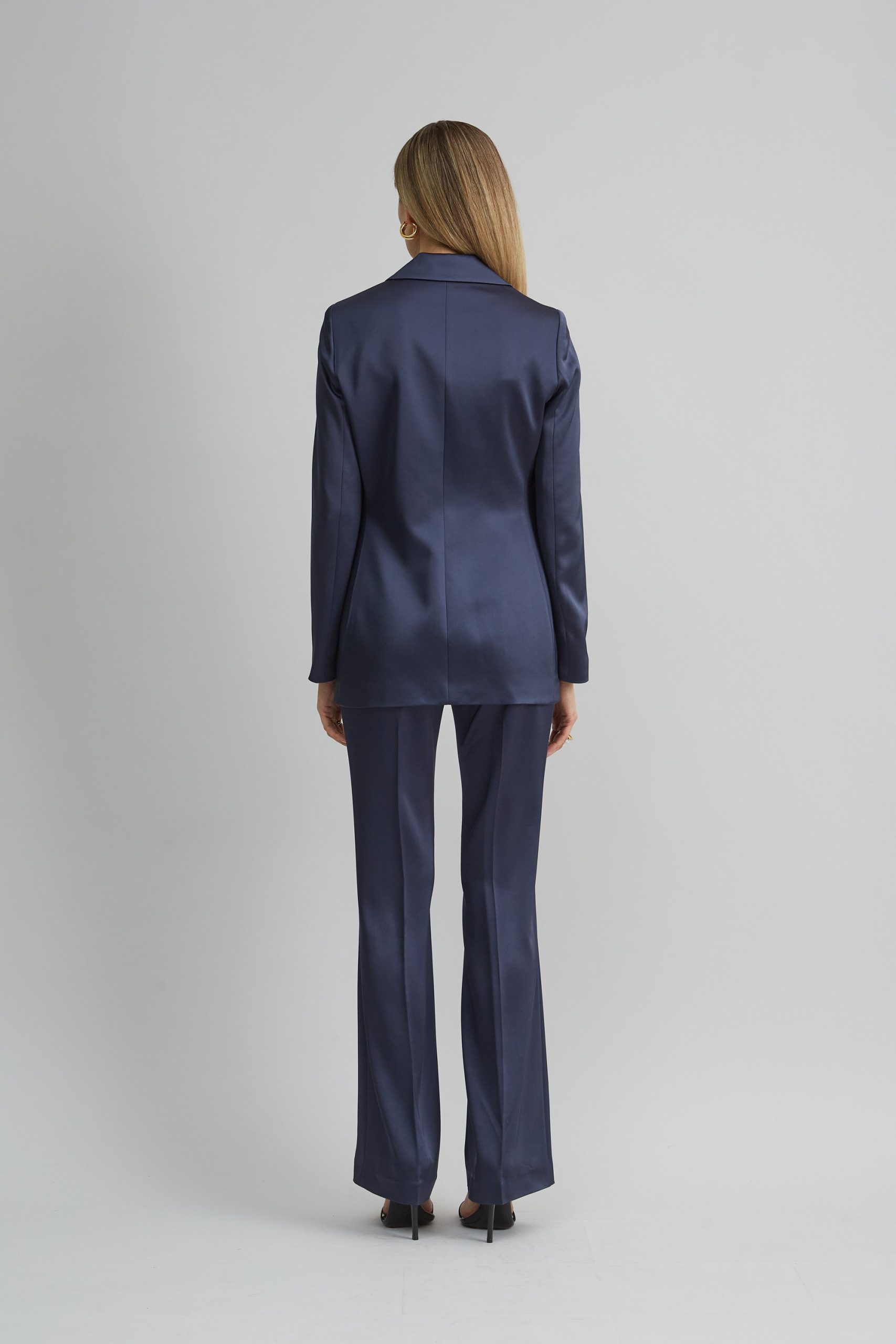 Constructed with long, lean lines, a notched lapel & side slits, our Satin Blazer is a collector’s piece. Crafted in our signature Satin, style it with our matching fit & flare pants or over a dress.