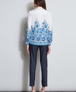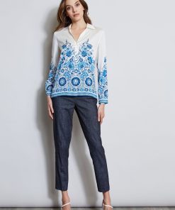 Our Cascade Garden Print speaks of a new season. This femme take on a classic button down shirt takes a playful turn in our engineered floral print. Designed in Silk Georgette with long sleeves, it’s perfect for pairing with our designer denim jean. This collector ‘s piece is a fun departure from the everyday solid button down.