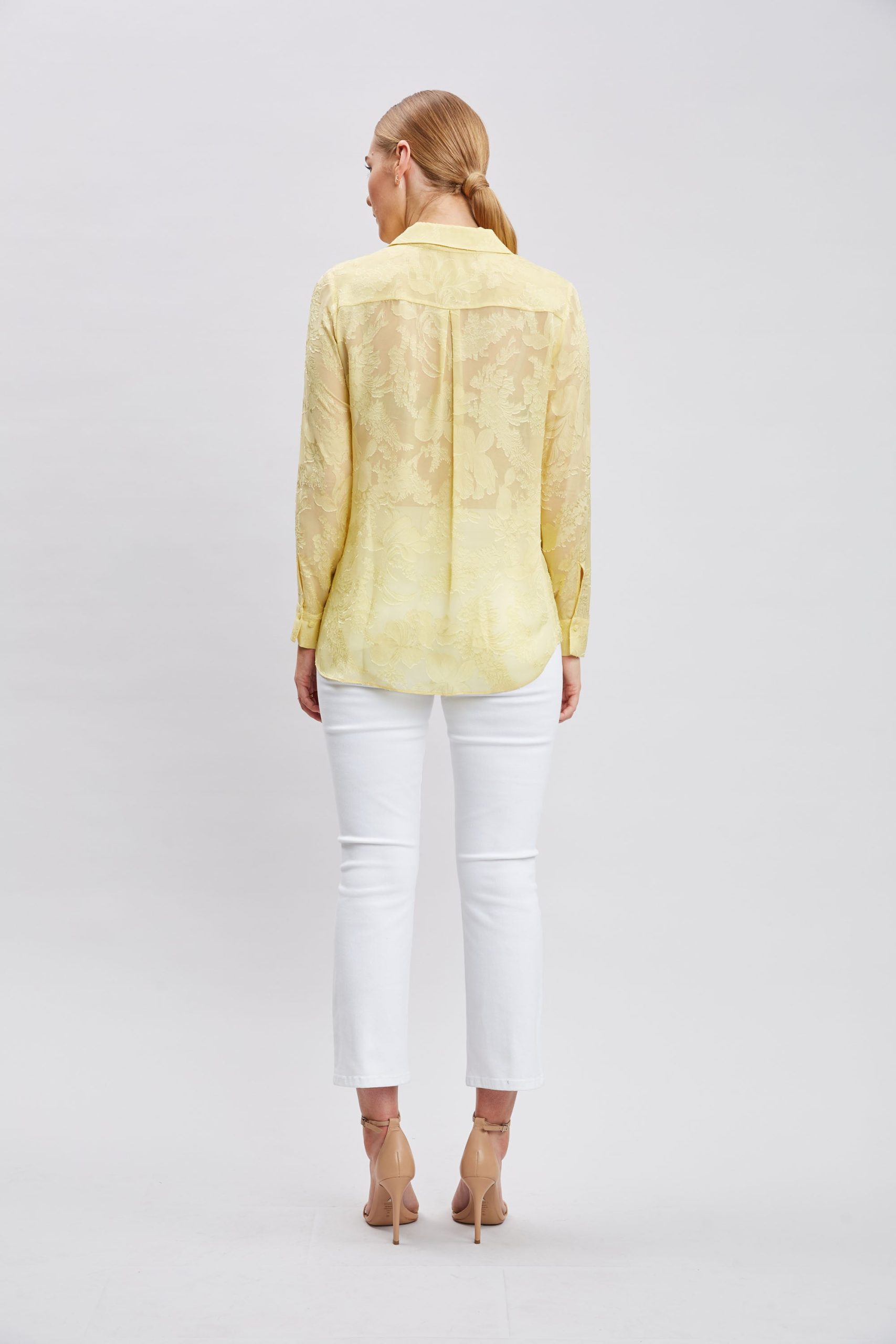 Express yourself in our Jacquard Silk Georgette Utility Shirt. The soft touch and patina of the fabric add a feminine touch to this sporty chic shirt. Effortless & timeless, you will love the look and feel of this button down shirt.