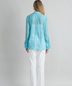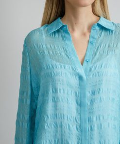 Semi-Sheer Long Sleeve Puckered Plaid Jacquard Silk Button Down Shirt