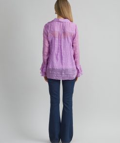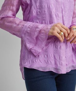 Our Jacquard Top speaks of a new season. This femme take on the classic button down is the shirt your closet has been looking for. Crafted in a Plaid Silk Jacquard with tiered ruffle cuffs, you’ll live in this shirt year-round.