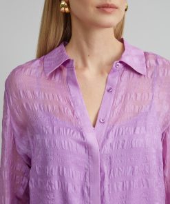 Semi-Sheer Long Sleeve Puckered Plaid Jacquard Silk Button Down Shirt