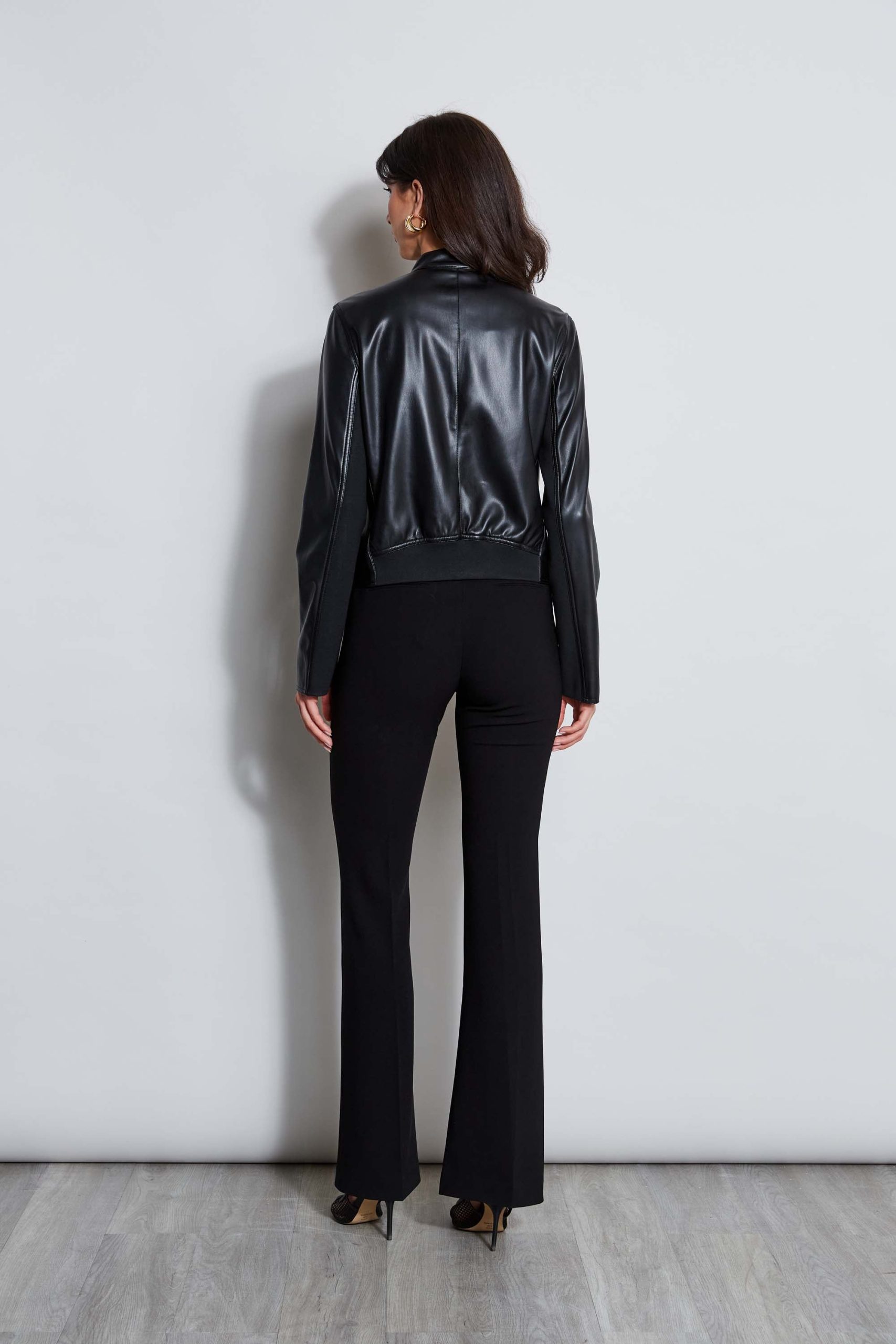 Crafted in the smoothest Vegan Leather, our jacket is an update to the Moto trend. Sporty & chic with architectural lines, side zip pockets and black elastic detailing. Whether layered with a sleek dress for a downtown vibe or with one of Fall’s luxe Silk blouses, this jacket is your next best friend.