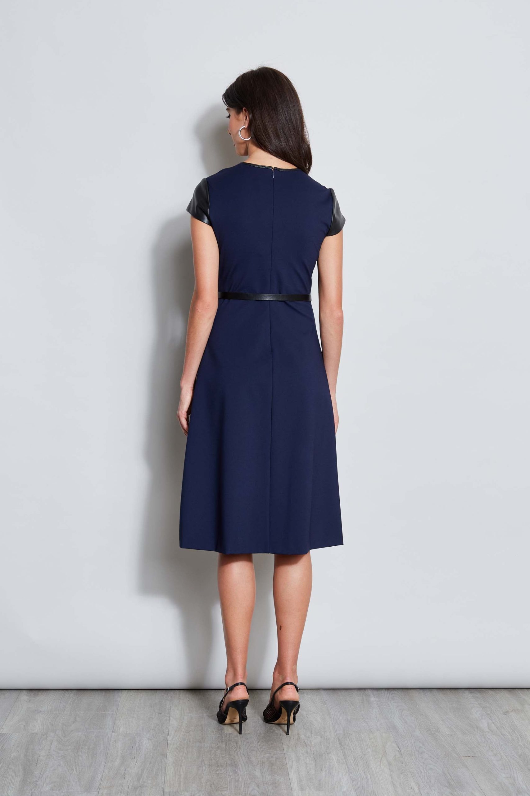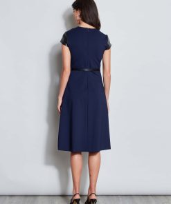 Our Stretch Luxe Double Knit Dress is a seasonless must have! The luxe vegan leather detailing and removable belt make this fit & flare dress perfect for day to dinner.